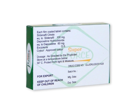 Formelen til stoffet er unik i den forstand at det inneholder to forskjellige aktive stoffer i stedet for ett, som virker parallelt. På grunn av den nye kombinasjonen av Sildenafil / Dapoxetine ( 100 mg / 60 mg ), blir Super P Force henvist til en egen klasse medikamenter.